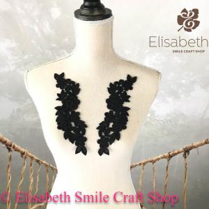モチーフレース 黒 ペア モチーフ 装飾 素材 衣装 レオタード バトン 男子体操 お花 刺繍 ケミカル レース 左右セット ハンドメイド 素材