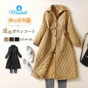 キルティング コート レディース 中綿コート カーディガン 中綿 綿入れ 無地 ひし形 チェック ウエストマーク アウター キルティング ロングコート ロング カジ