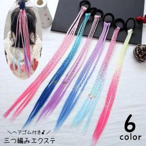 エクステ エクステンション ゴム付き 単品 三つ編み ヘアゴム キッズ ジュニア 子供 レディース ヘアアクセサリー ポイント