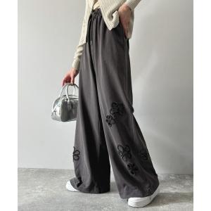 スウェットパンツ ジャージ 「mily bilet」唯一無二の華やかデザイン。花柄レース 切り替えスウェットパンツ レディース