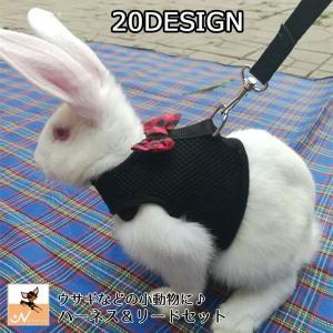 うさぎ ウサギ ハーネス リード 付 小動物 モルモット フェレット チンチラ プレーリードッグ チェック ペット 服 胴輪 デニム