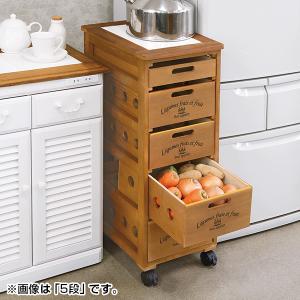 天然木キッチンストッカー ブラウン ホワイト 5段 深型4段