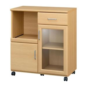 白井産業 フルニコ カウンターワゴン 食器棚 幅約65cm 高さ80cm ナチュラルブラウン キャスター付 背面化粧 FUL-8065SLNA