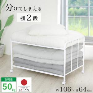 ヤフー1位 布団収納ラック 2段 ハイタイプ 高さ5段調整 キャスター付き 布団ラック 収納ワゴン 幅110cm×奥行40cm×高さ100cm ふとん収納 収納ラック 送料無料