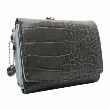Pisoraro(ピソラロ) クロコ型押し がま口BOXミニウォレット 三つ折り財布 ダークグレー PR115【お寄せ品、返品キャンセル不可。欠品終売時連絡あり】