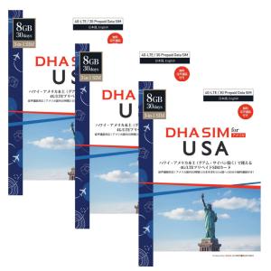 3枚セット アメリカ ハワイ simカード プリペイドsim 30日間 8GB 簡単設定 説明書付 無料 音声通話付 4G/LTE回線 simフリー端末のみ対応