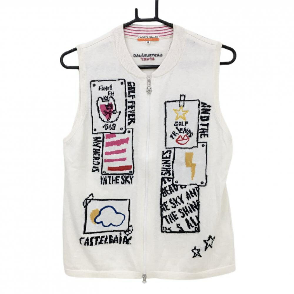 PEARLY GATES パーリーゲイツ Vネック ニットベスト ボーダー柄 ホワイト系 2 【中古】ゴルフウェア レディース