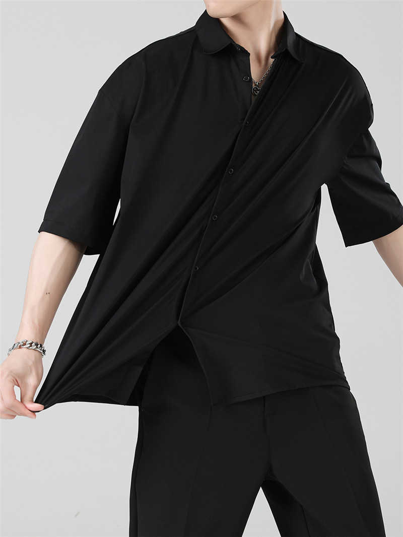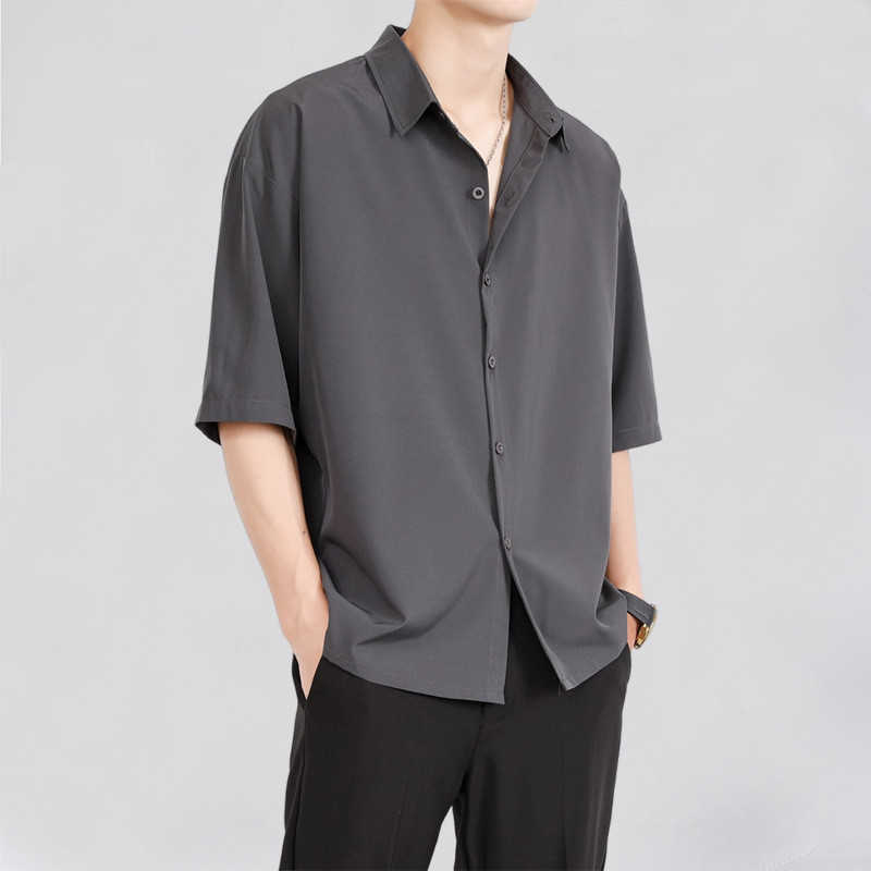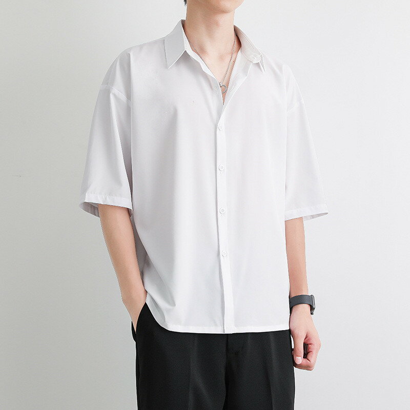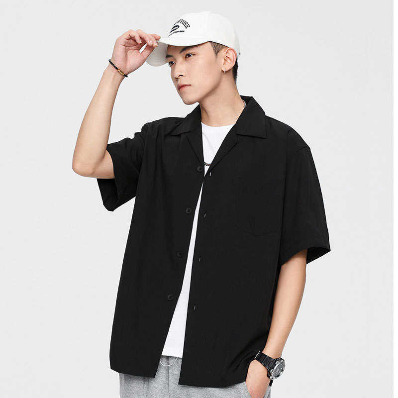 オープンカラーシャツ シャツ 通勤 シワになりにくい 夏 メンズ 半袖シャツ 開襟シャツ カジュアルシャツ 無地 ルーズ シンプル 春 ビッグシルエット ワイシャツ 送料無料 大きいサイズ 軽い 柔らかい ゆったり オーバーサイズ