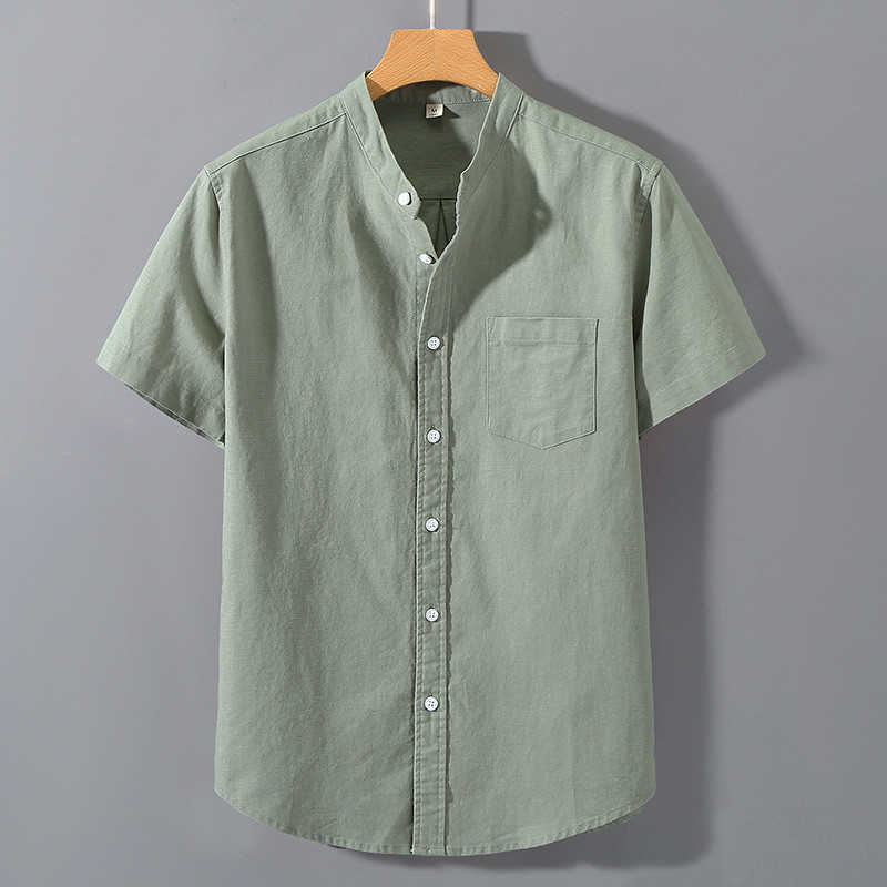 無地 リネンシャツ 送料無料 リネン シャツ メンズ カジュアルシャツ 立ち襟 メンズ コットン 半袖 トップス 薄手 スタンドカラー ハンドカラー 春 夏 綿麻シャツ 清涼感 シンプル オシャレ カジュアル きれいめ ビジネス 綿麻