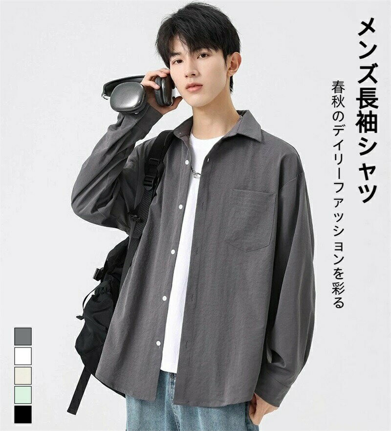 メンズ シャツ 長袖 カジュアルシャツ 春 夏 秋 爽やか ワイシャツ 送料無料 大きいサイズ 韓国 軽い 柔らかい ゆったり オーバーサイズ ビッグシルエット ストリート系 ドロップショルダー