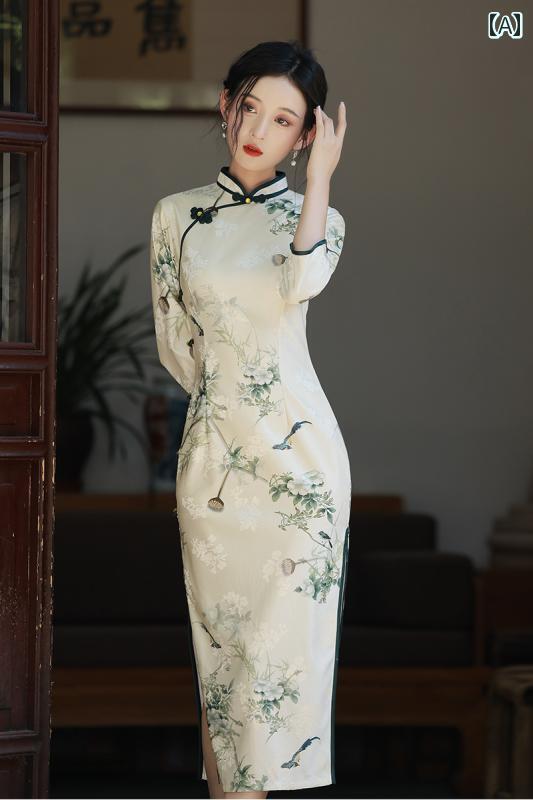 ドレス 秋 冬 チャイナ 美しい 撮影 衣装 レッド ハイエンド ベルベット ホット ロング チャイナ 着用 ウェディング 義母用