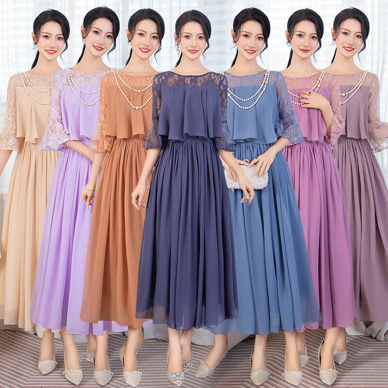 お買い物マラソン【P5倍】パーティードレス ミモレ丈 総レース 袖あり七分袖 結婚式 ワンピース パーティードレス ロング ベージュ ブルー 大きいサイズ 入園式 二次会 謝恩会 同窓会 服装 発表会 大人 フォーマル 20代 30代 40代 50代 S-4XL 春 夏