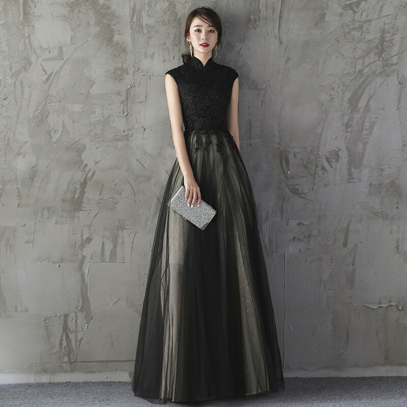 パーティードレス 結婚式 ワンピース ロングドレス 詰襟 ドレス レース チュール Aライン 演奏会 ロング丈 イブニングドレス カクテルドレス 二次会 花嫁 ピアノ 発表会 ノースリーブ ウエディングドレス お呼ばれ 入学式 黒 フォーマルドレス 成人式 同窓会 上品