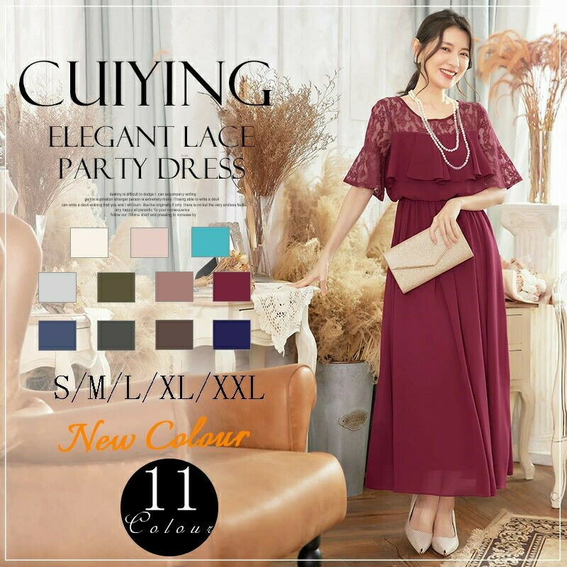 パーティードレス 結婚式 ワンピース ロング丈 大きいサイズ マタニティ フォーマル レース フリル ドレス マキシ 夏 秋冬 大人 可愛い 半袖 袖ありきれいめ 楽チン ゆったり フリル レディース パーティー