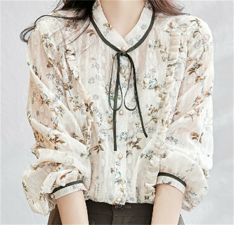 ブラウス レディース 春夏 オシャレ 花柄ブラウス 長袖 ブラウス シフォンブラウス オフィス 40代 30代 50代 エレガント 韓国風 通勤 OL リボン フレア 大人 シャツ 着痩せ ブラウス ゆったり カジュアル ウエア トップス