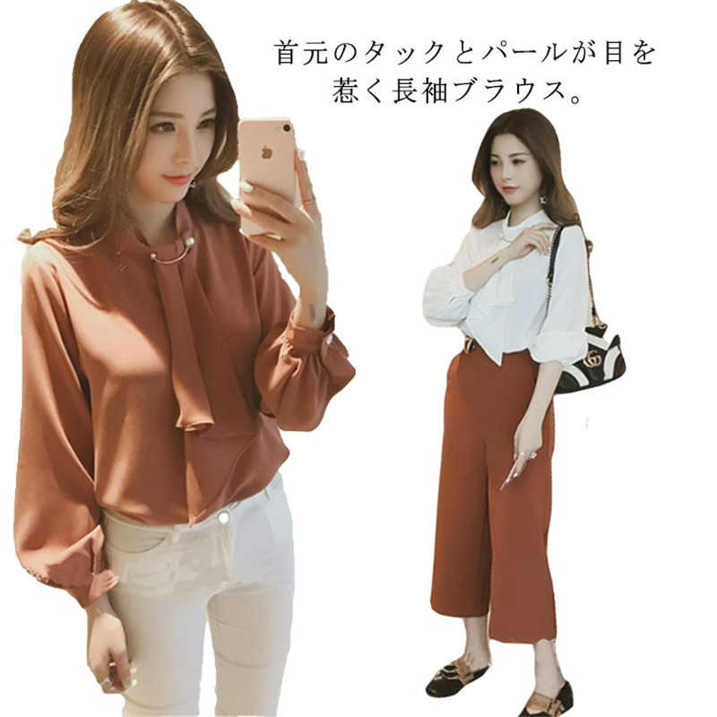 トップス シャツ レディース ブラウス フォーマル ハイネックブラウス プチハイネック 長袖 秋 パール タックブラウス セレモニー オフィス カジュアル ふんわり パール