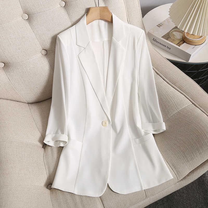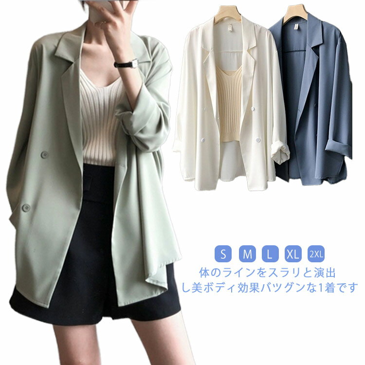 レディース ママ ブレザー スーツ ライトアウター ジャケット ジャケット 羽織り オーバーサイズ 無地 カジュアル 春夏 薄手 テーラードジャケット 前開き オケージョン 結婚式 大人かわいい おしゃれ フロントボタン フォーマル ビジネス オフィス 7分袖