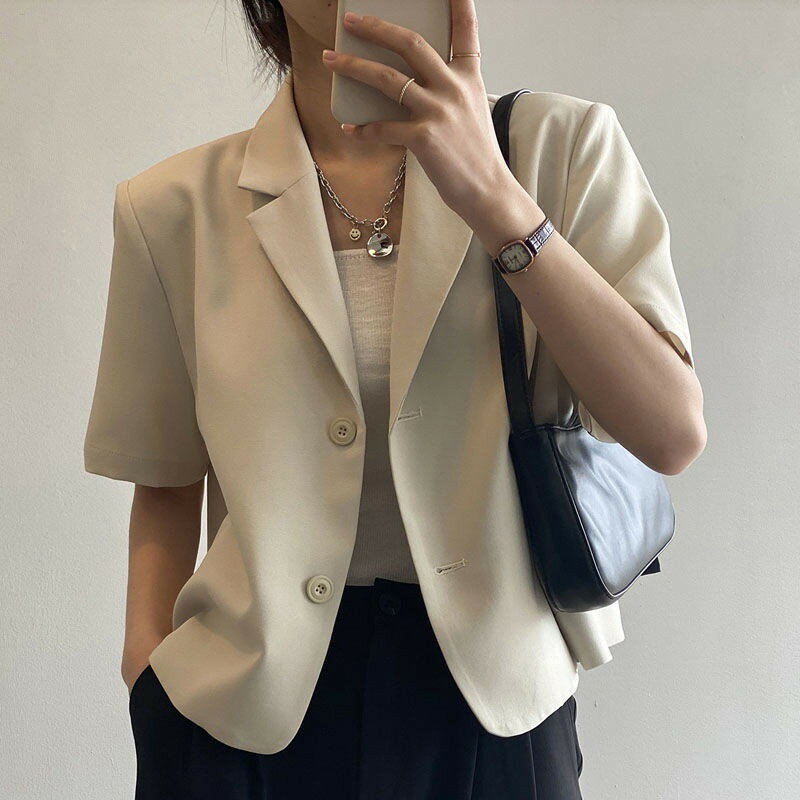 テーラードジャケット 半袖 レディース 夏 ジャケット テーラード サマージャケット スーツジャケット ショート丈 サマースーツ レディース テーラード クロップド アウター 薄手 羽織 普段着 オフィス カジュアル キレイめ 大人 オシャレ 韓国 韓国ファッション