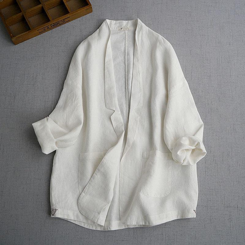 レディース L 送料無料 ゆったり アウターサマージャケット 夏アウター テーラード 麻 七分袖 薄手 トップス 大き目 ナチュラルプ 体型カバー ブラック ホワイト カジュアルジャケット