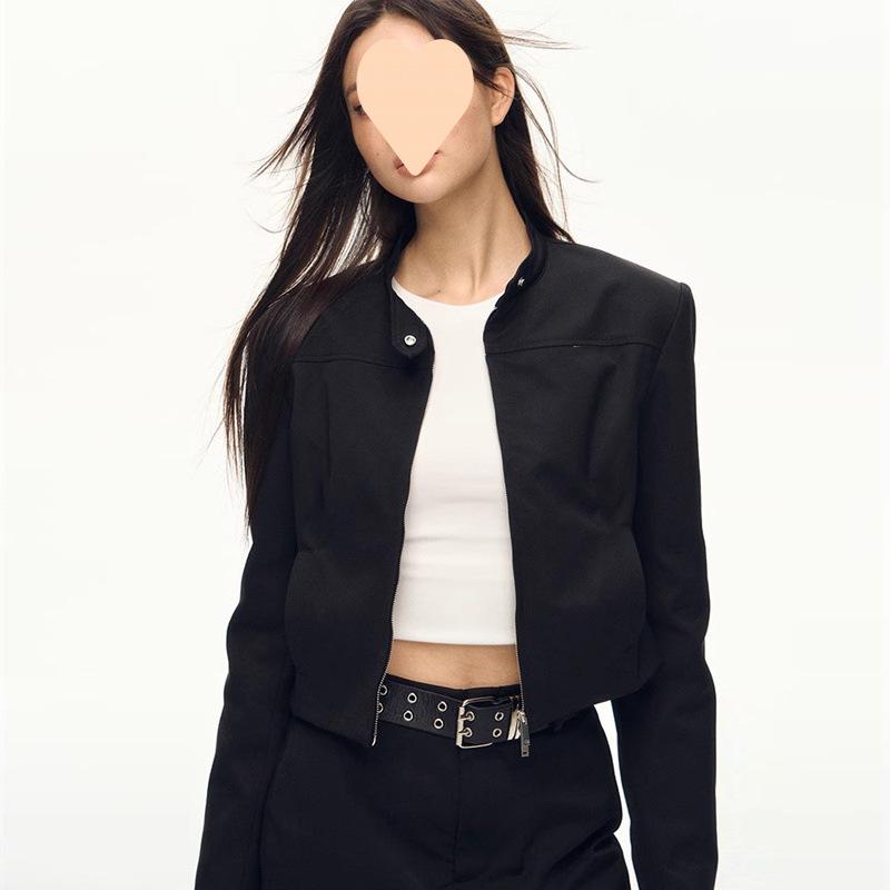 スタジャン レディース アウター ノーカラー 長袖 ジップアップ ジャケット スウェット ショート丈 上着 シンプル 体型カバー ライダースジャケット コート ライトジャケット 無地 パーカー OL カジュアル 大きいサイズ ゆったり おしゃれ 通勤 秋 春 羽織り
