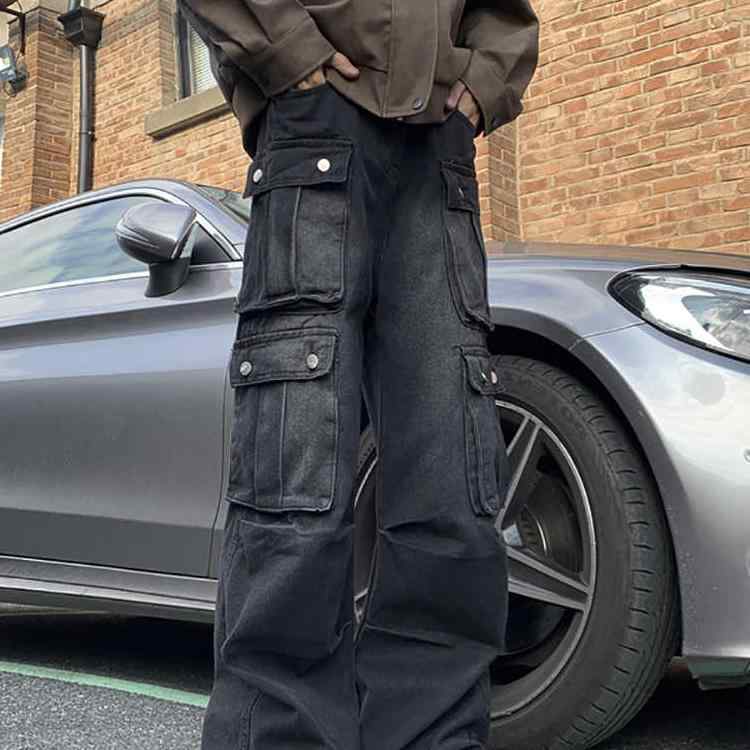 デニム メンズ ストレートジーンズ ウォッシュド加工 ダークグレー ローライズ ジーパン ズボン パンツ カジュアル 韓国風 春秋