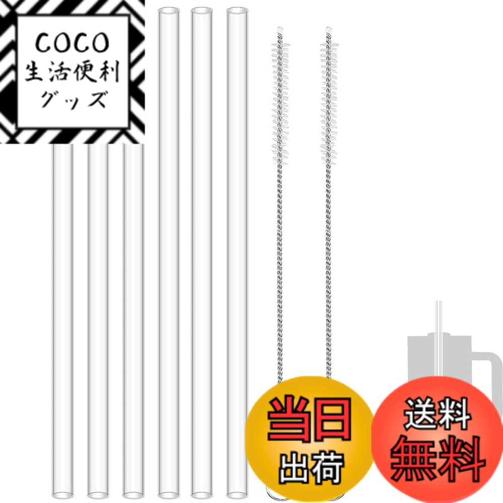 【送料無料】Stanley (スタンレー) 交換用ストロー 40オンス 30オンス タンブラー用 再利用可能ロング クリア プラスチックストロー6本 & クリーニングブラシ1本 スタンレーカップ用 Stanley Adventure トラベルタンブラーアクセサリーに 12インチ 色:クリアブラック