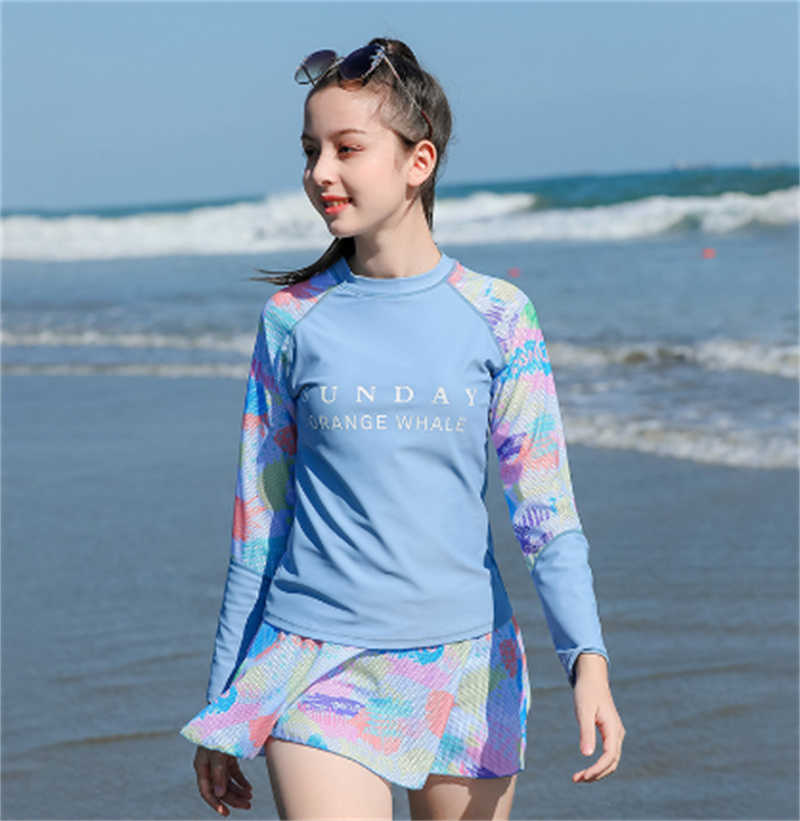 女の子 水着 ジュニア スクール水着 長袖 セパレート 2点セット 体型カバー レデイース スイムウェア トップス スカート パンツショート付き キッズ パッド付 日焼け対策 紫外線対策 スポーティー ガールズ 子ども用 みずぎ スイミング プール ビーチ140 150 160 165 170