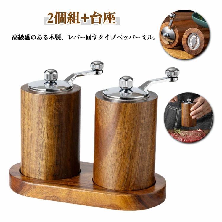 期間限定5%クーポン ペッパーミル 手動 2本セット ソルトミル スパイスミル スパイス 調味料 調味料挽き ミル 香辛料 粗さ調節 塩 黒胡椒 胡椒 山椒 花椒 キッチン ローズマリー キッチン キッチン用品 使いやすい グラインダー