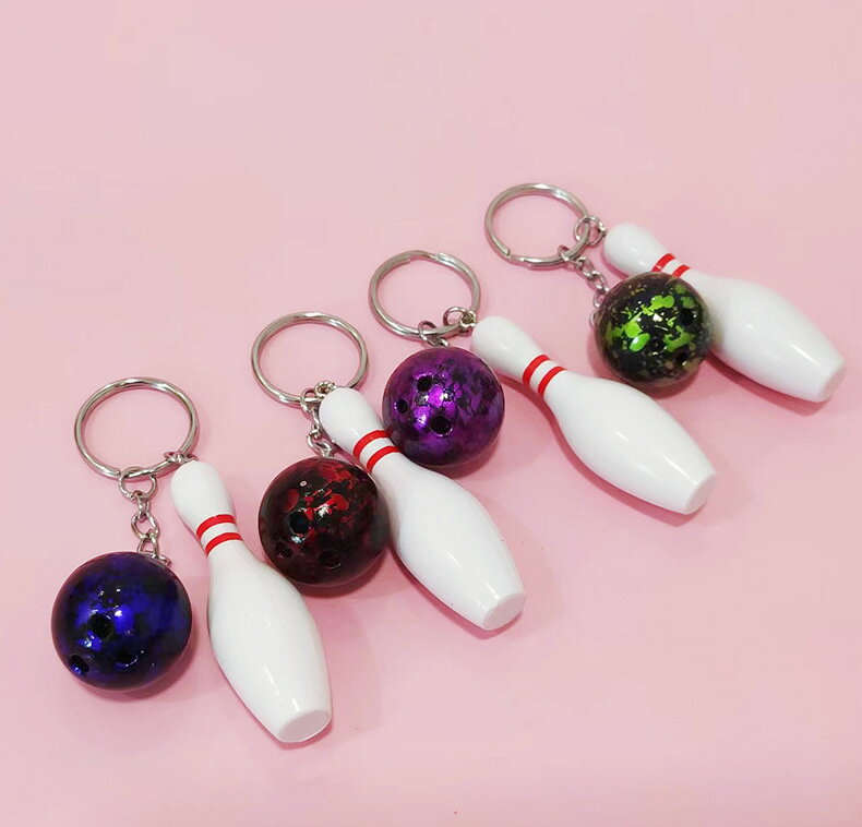 キーホルダー キーリング ペンダント ボウリングピンとボール 装飾 クラフト用品 4点セット