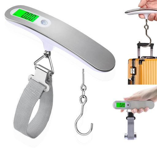 荷物はかり旅行ラゲッジスケール携帯式デジタルスケール吊り下げ式おしゃれ計量器最大50kgまで軽量風袋引き機能付海外旅行登山釣りはかり小型おしゃれ(シルバー)