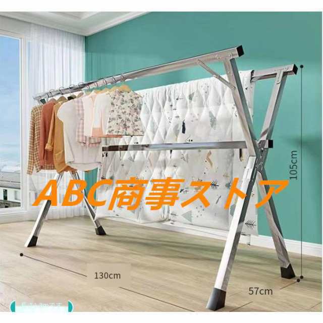 ステンレス キャスター付き 伸縮式多機能布団干し 物干しスタンド ダブルバータイプ 洗濯物干し 折りたたみ X型 ハンガー掛け付き 大容量 室内 屋外