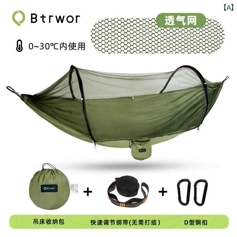 ハンモック 蚊帳付き ワンタッチハンモック 室内 室外 虫対策 通気 快適 軽量 2人用 290cm×140cm ビーチ ハイキング ピクニック キャンプ 収納袋付き 持ち運び簡単