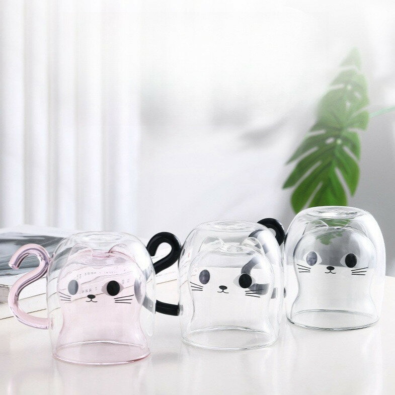 二重ガラス 二重ガラス パンダ ダブルウォール グラス 二重構造 250ML 保温 アニマルカップ かわいい くま 2個セット!アニマル 耐熱ガラス マグカップ タンブラー 耐熱 アニマル ダブルグラス 保冷