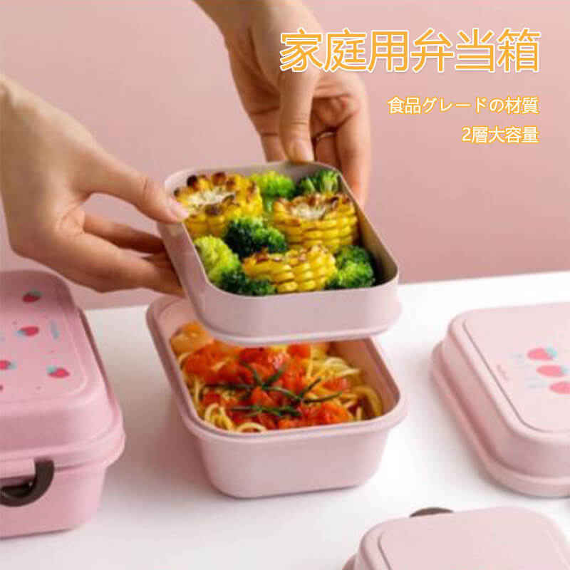 お買い物マラソン【P5倍】二重の弁当ボックス pp材質 軽くて持ち運びやすい 仕切り式 味が混ざらない 女子 大人 食洗機 レンジ対応 重ねて配置できるので 弁当箱 女の子