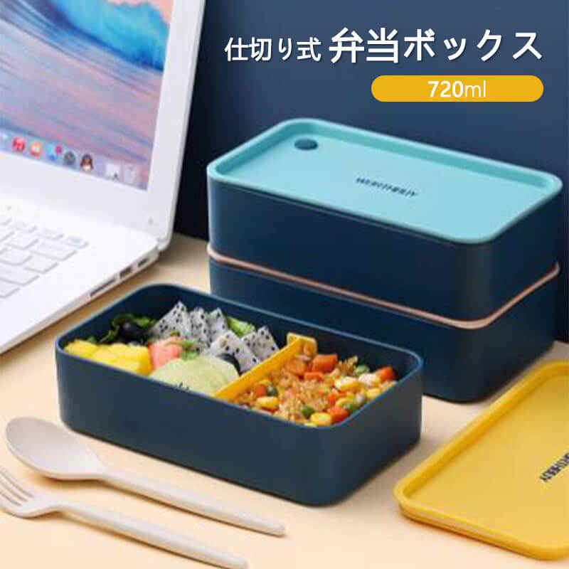 お買い物マラソン【P5倍】仕切り式 弁当ボックス 弁当箱 キッチン用品 仕切り式 味が混ざらない 女子 大人 食洗機 レンジ対応 重ねて配置できるので 容量720ml 弁当箱 女の子