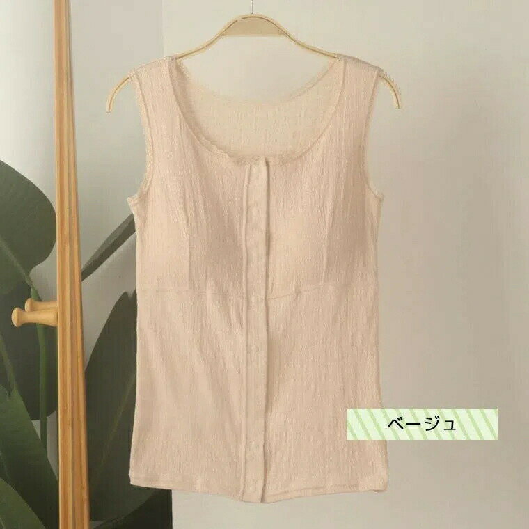 タンクトップ 締め付けない ズレない パット付 前ボタン 前開き フロントホック アンダーフリー ゴムなし ブラトップ 前のみ パッドのみ ルームウェア カップ付き インナー 袖なし 綿 コットン ガーゼ ダブルガーゼ 50代 60代
