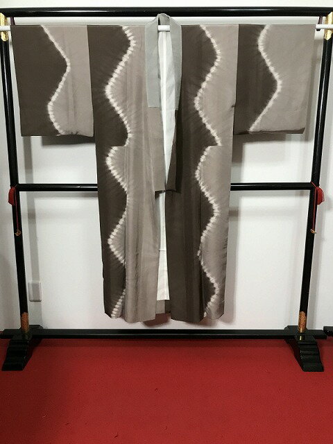 【お得なクーポン配布中】 男襦袢 長襦袢 男物 絞り模様 茶鼠色 キングサイズ 半衿付 U-1519 着物 きもの kimono 和服 和装 中古 リサイクル着物 【送料無料】
