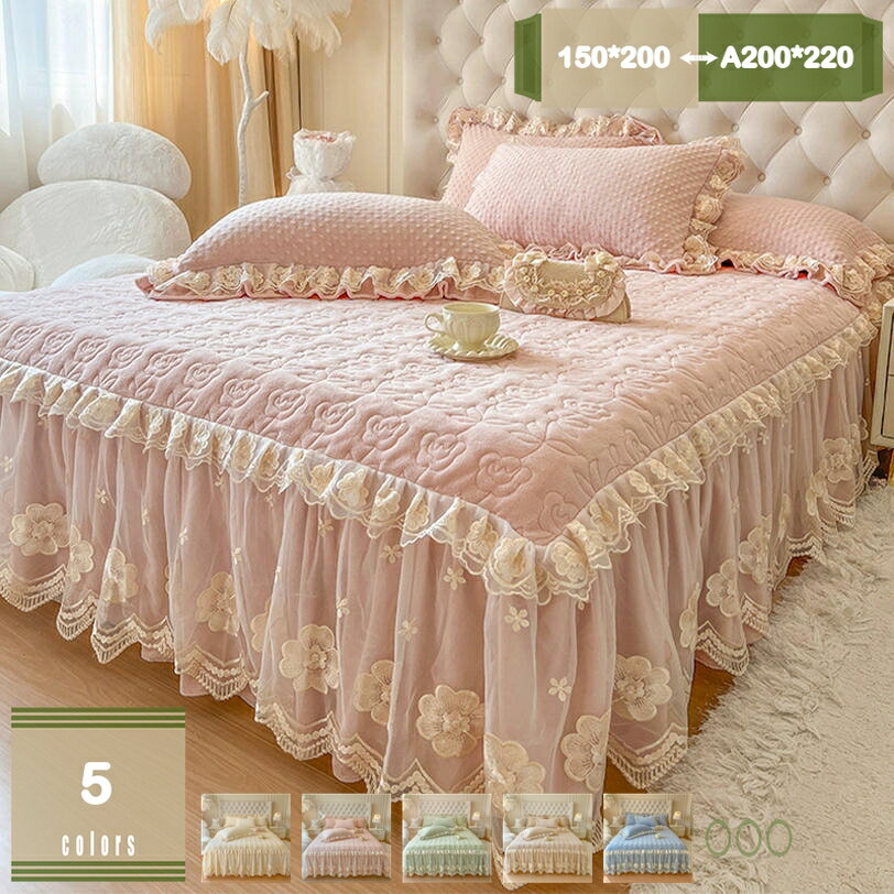 1000円OFFクーポン 中綿 ベッドスカート 姫系 中綿 厚め 保温 フランネル 柔らか 暖かい ダブル クイーン キング ロング 秋冬 きれいめ ベッドカバー シーツカバー マットレスカバー 柔らかい ズレ防止ヒモ付き 洗える プレゼント おしゃれ hikari-plus