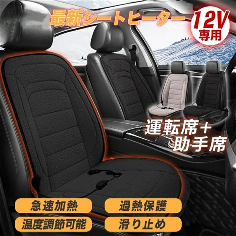シートヒーターホットカーシート 2人掛け 運転席+助手席 ホットカーシート 電熱シート 加熱 2段階温度調節 加熱パッド ヒーター内蔵 シガー電源 DC12V 暖かい 秋冬 調整可能 カーシート シートカバー 運転席 助手席 暖房器具