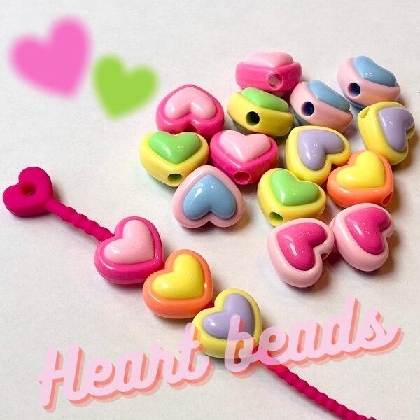 ぷっくり ハート ダブルカラー ビーズ キーホルダー ネックレス パーツ キッズアクセサリー アクセサリー ハンドメイド DIY 資材 デコパーティ