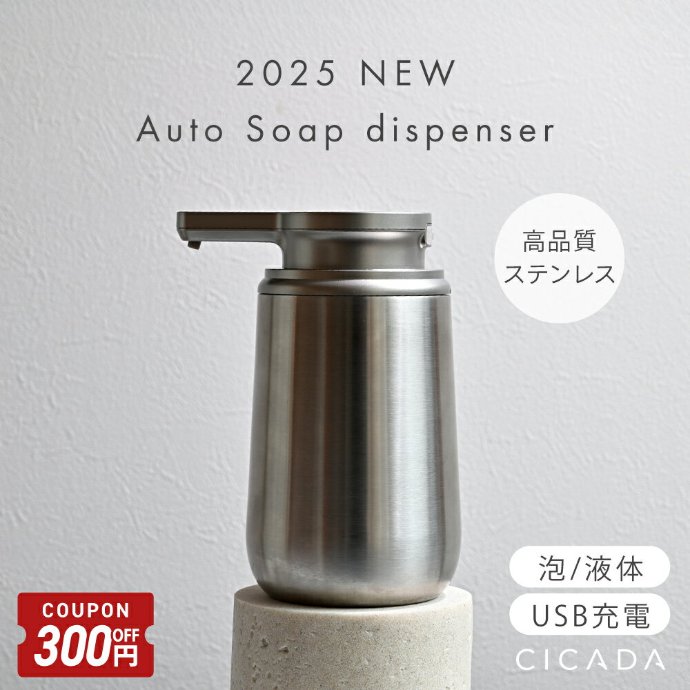 【3/11-20限定300円OFFクーポン】 \ 1年保証 / ソープディスペンサー ステンレス 自動 泡 液体 充電式 おしゃれ 大容量 自動洗浄 オートソープディスペンサー 自動ソープディスペンサー ハンドソープ 洗剤 キッチン 詰め替え USB充電 IPX5 防水 錆びにくい [CICADA]