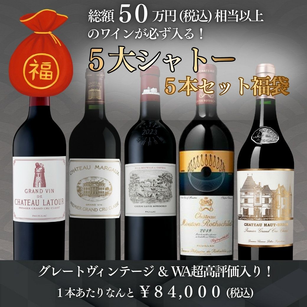 5大シャトーが揃う!メドック格付け 1級シャトー5本福袋 1本あたりなんと¥84,000! 5大シャトー ラフィット ムートン マルゴー ラトゥール オーブリオン メドック格付け1級シャトー 赤 赤ワイン wine wainn フランス ボルドー ギフト 750ml 【クール便配送】