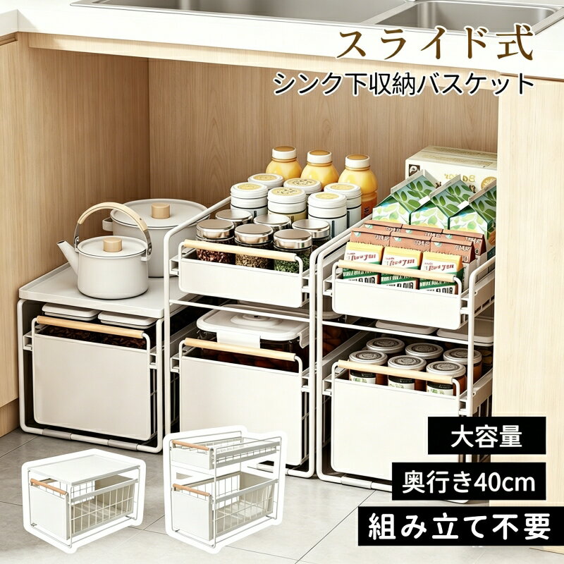 シンク下 収納 スライド ラック キッチン下 ステンレス フライパン 鍋 なべ 棚 引出し キッチンラック 台所収納 引き出しスライドラック 1段 2段式 キッチン隙間収納 スライド引き出し スリム