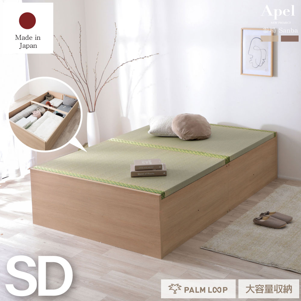 日本製 小上がり風 連結ファミリーベッド い草張り床板 大容量収納付き「PALM LOOP」 Apel 収納ベッド ヘッドレス イ草 セミダブル ロータイプ 連結ベッド 床下全面収納 参場 SANBA 4-012
