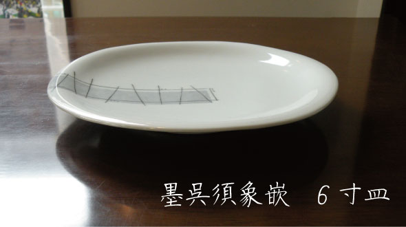 【砥部焼】墨呉須象嵌7寸皿 陶器 白磁 手作り【陶彩窯】