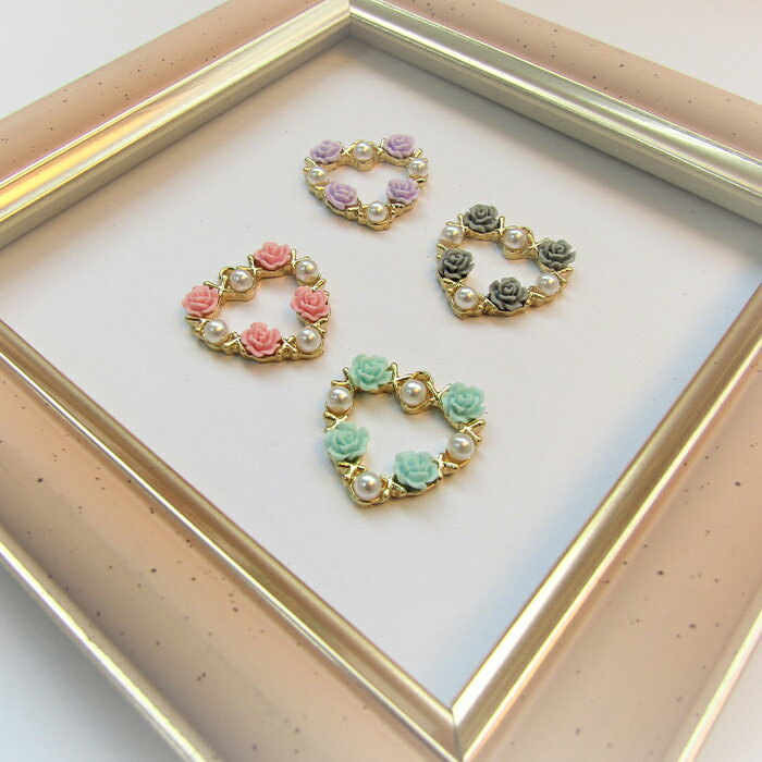 【売り切り】可愛いハートのチャーム バラとパールがエレガントなメタルパーツ 薔薇 ネックレス ピアス charm センターパーツ アクセサリー 資材 パーツ ハンドメイド イベント用品