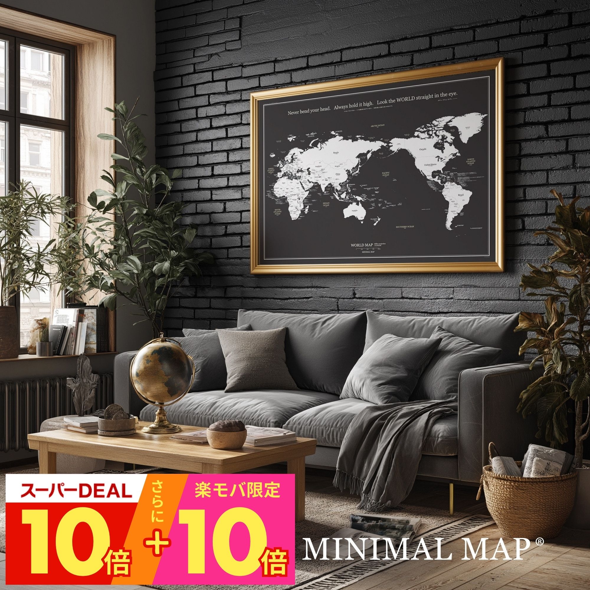 300円OFF★世界地図 ポスター A2-A0|ブラック|英語/日本語 選べる|名入れ/メッセージ対応|ラミネート/パウチ(耐水)/パネル/フレーム対応|MINIMAL MAP:ミニマルマップ