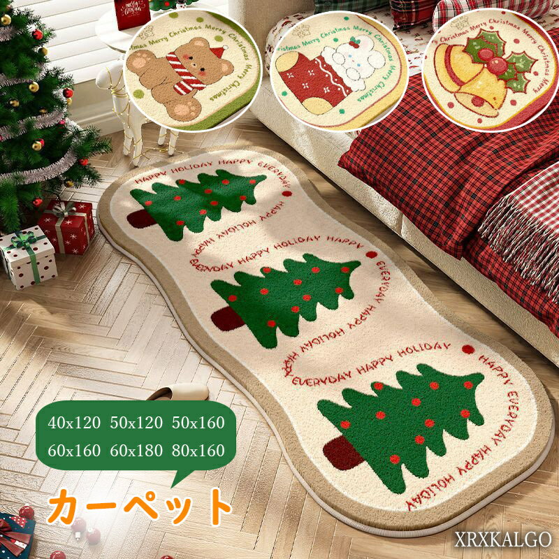 「8%OFF × P8倍」カーペット クリスマス 玄関ラッグ シミュレーションウール質感 ベッドルーム デコレーション ソファコーヒーテーブルラグ クリスマスツリー クリスマスイブ 雪人 飾り 可愛い