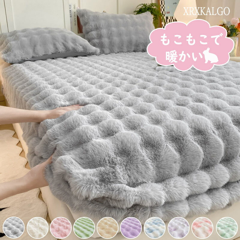 「8%OFF × P8倍」ボックスシーツ 枕カバー もこもこ シングル ダブル セミダブル クイーン 高さ30cm以内 生活防水 ウサギフリース素材 5面 ベッドシーツ マットレスカバー シート 高品質 6色 送料無料