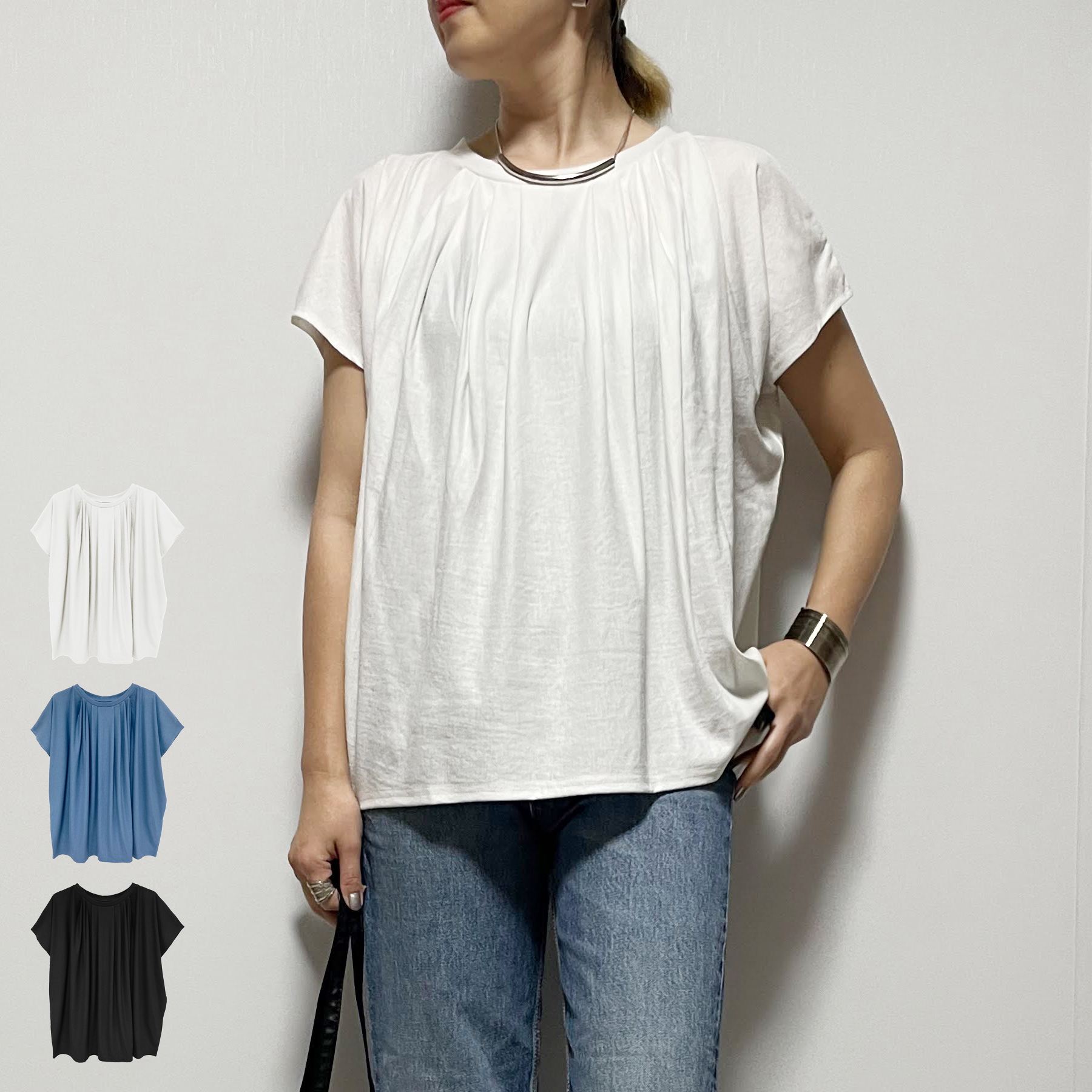 \SALE50%OFF/プルオーバー レディース フレンチスリーブ 春 夏 接触冷感 カノコ 衿 タック ワイド 大人 体型カバー ゆったり 20代 30代 40代 50代